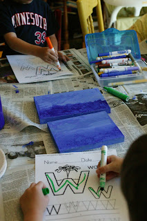 While they wait for the paint to dry, have them practice writing the letter "W".