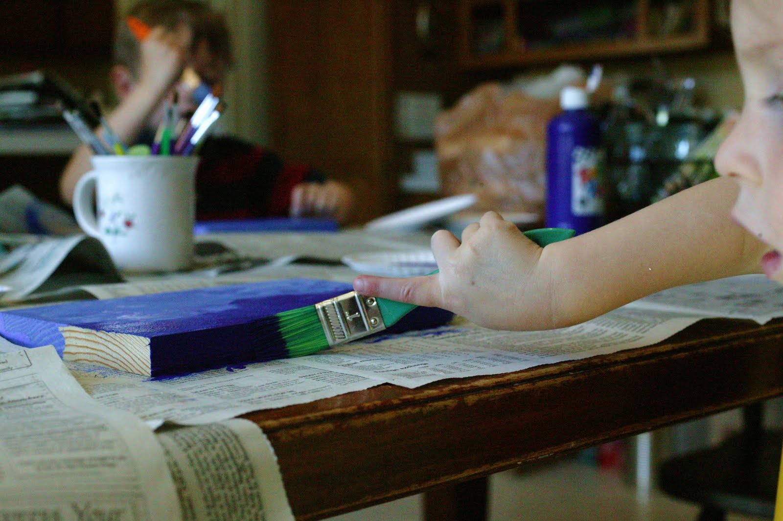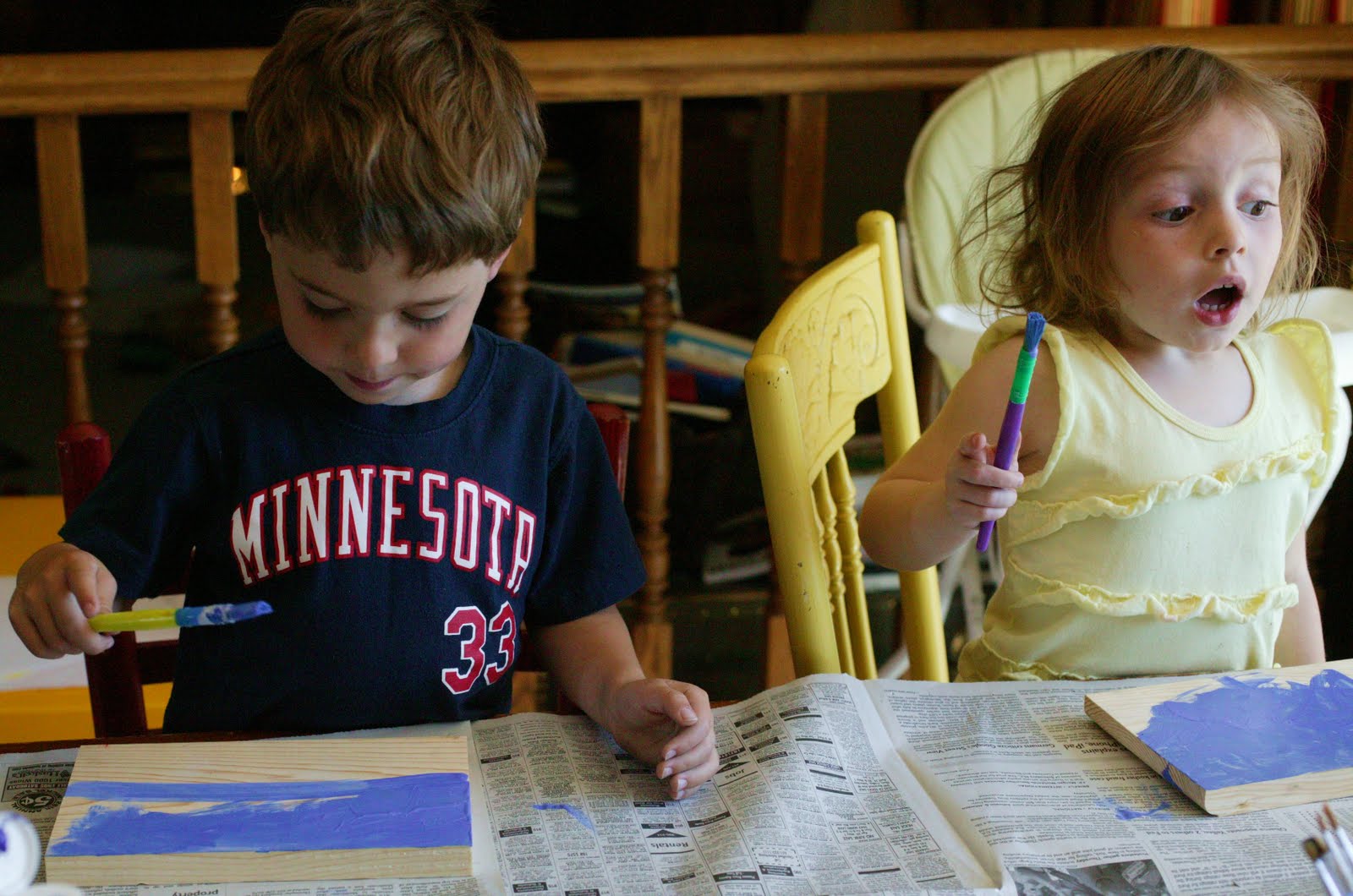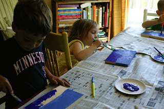Set out two shades of blue. Have the children paint the light blue on the top and the dark blue on the bottom.