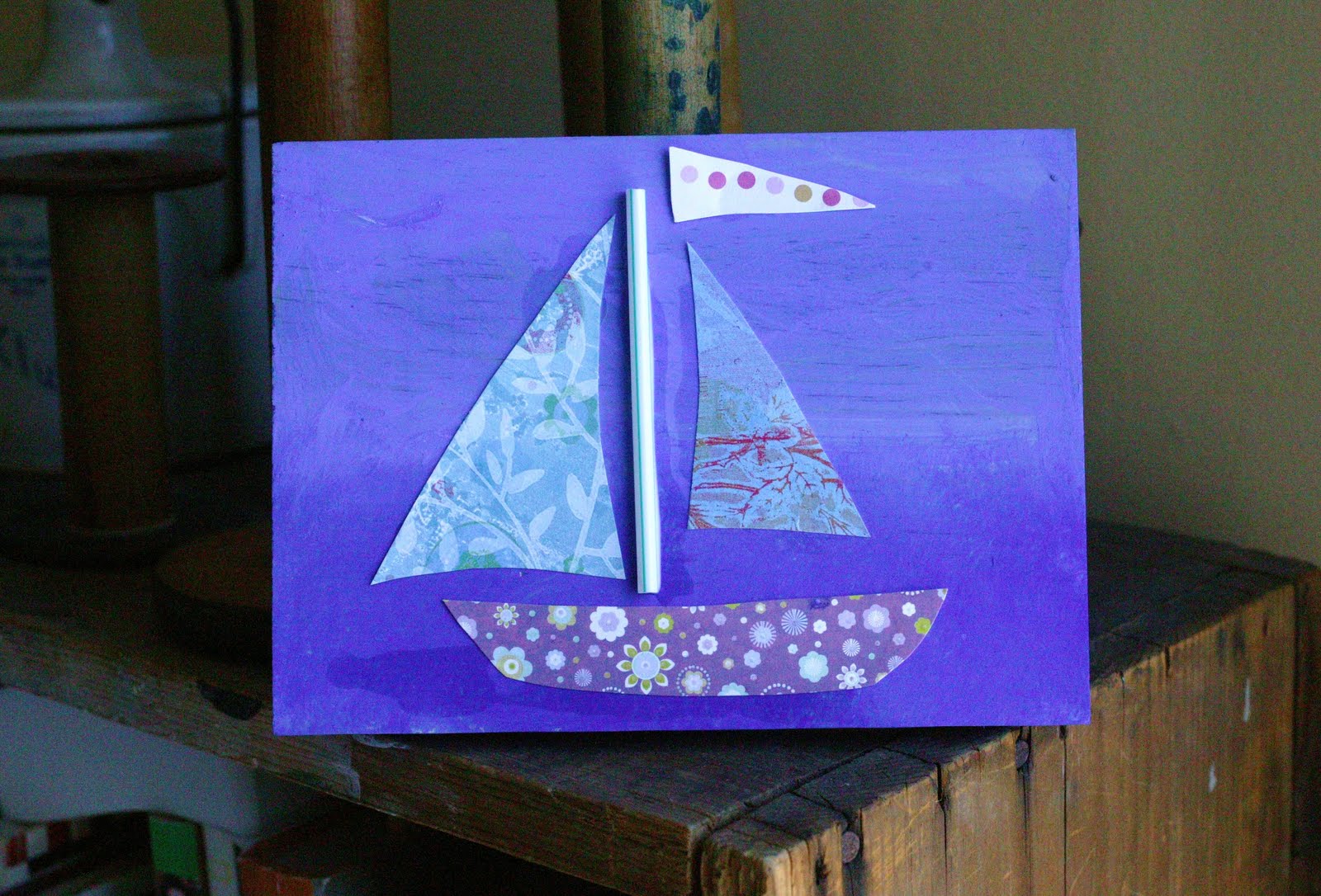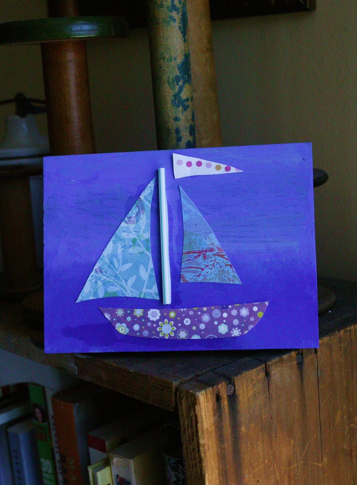 When dry, cut out scrap paper for the base and sails of your boat. Have the children glue them on.