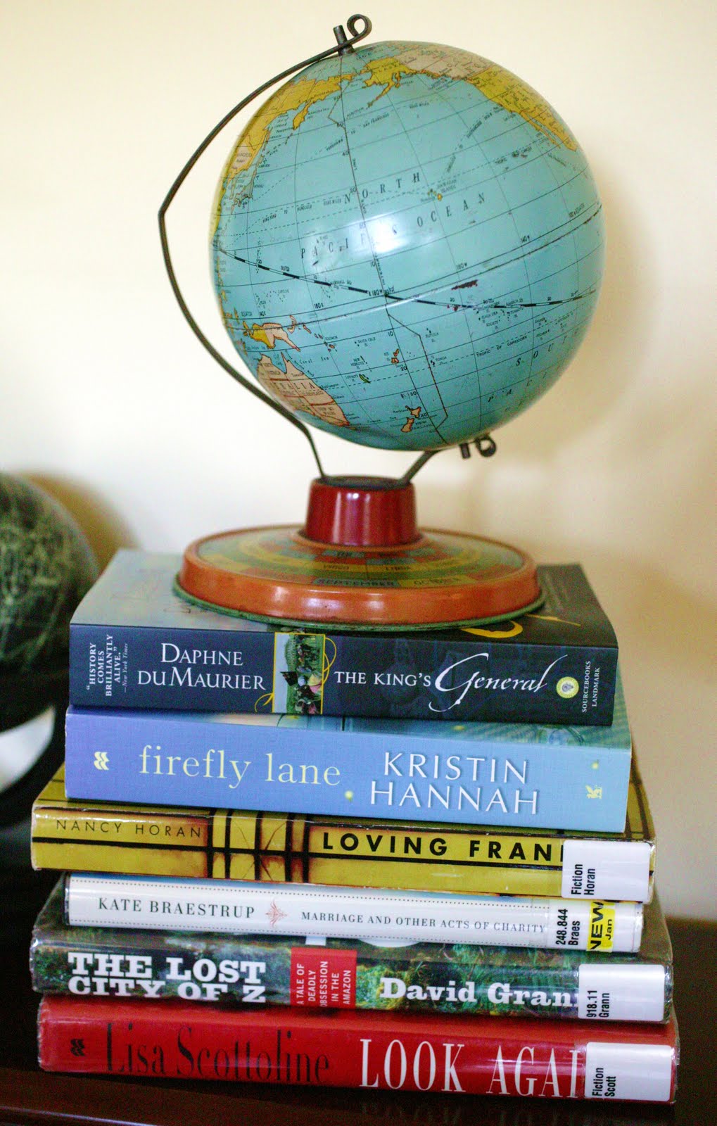 I'd like a week off to lounge by some lovely pool with no children and an endless supply of smoothies so I can read this stack of books. I have a feeling several of these will head back to the library without being read.