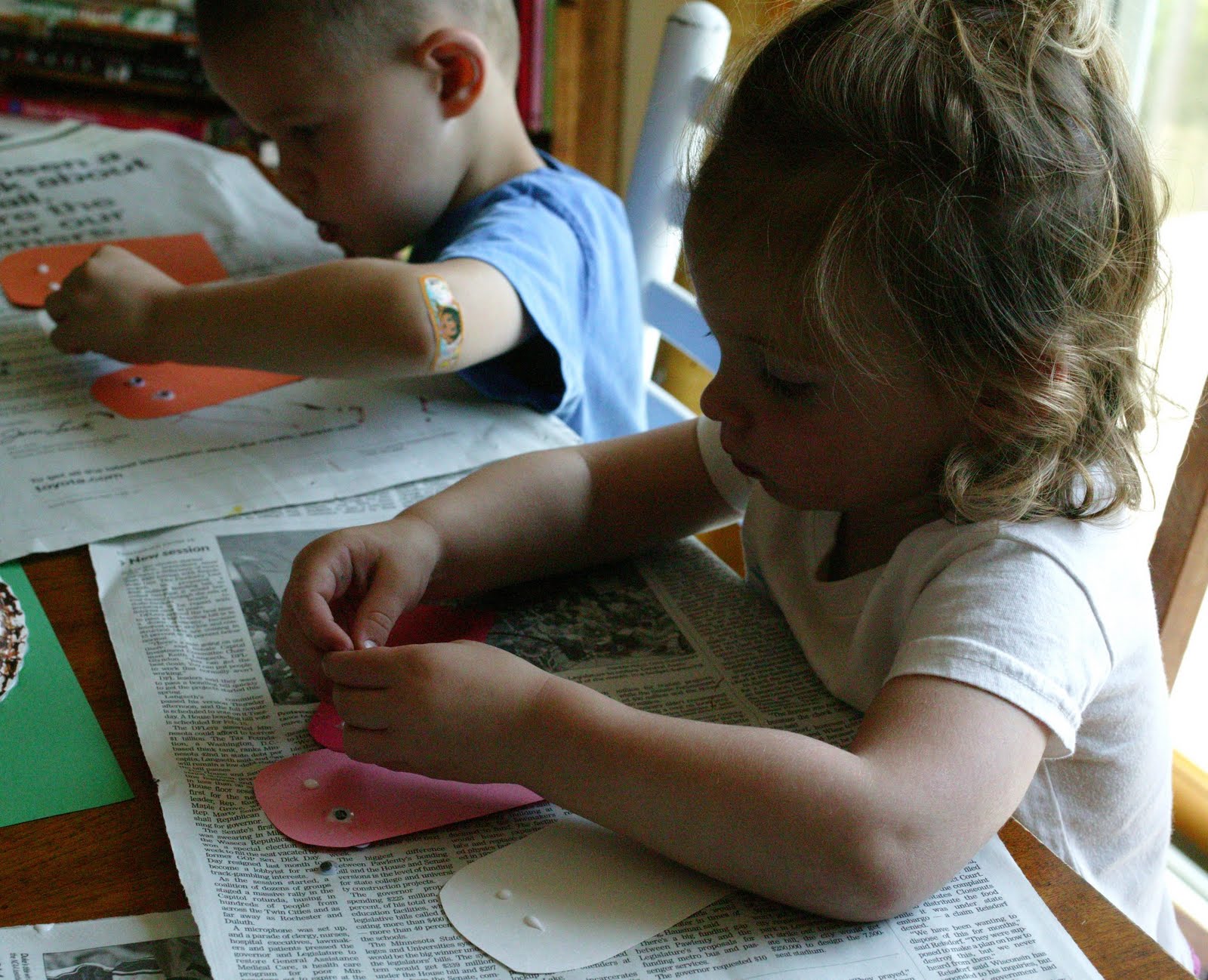 Give each child six googly eyes and have them glue them on - you could also just use markers. when working with very young children, I like to make the little dabs of glue and just have them stick the eyes on.