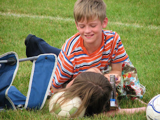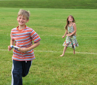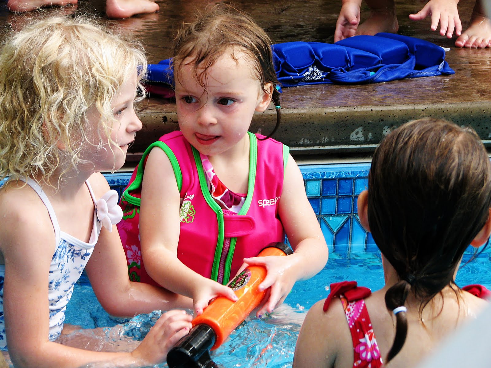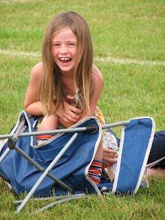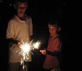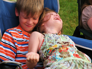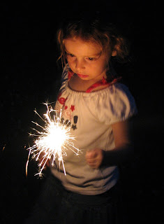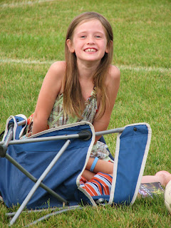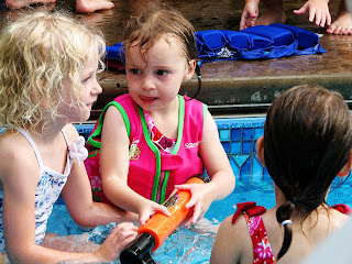 On Saturday after the parade, we met up with friends for a BBQ/Pool Party at the Baker's home (which I have decided is in fact, my dream home). My kids had so much fun in the pool - we had to drag them out in order to have dinner. The food was amazing - I tried a new recipe which I will have to make again and take photos for the blog (a roasted vegetable dish with fig goat cheese), Mercedes made a green salad with cantaloupe and mint and also brought pomegranate sorbet that was really delicious. There was homemade guacamole and burger and hot dogs, watermelon and corn on the cob, cupcakes with fresh whipped cream and berries and Orangina to drink. So good and so much fun!